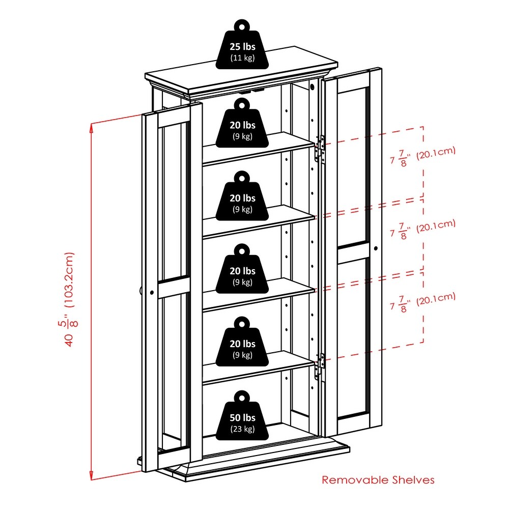 - 5 adjustable shelves offer ample storage for up to 205 CDs or 135 DVDs